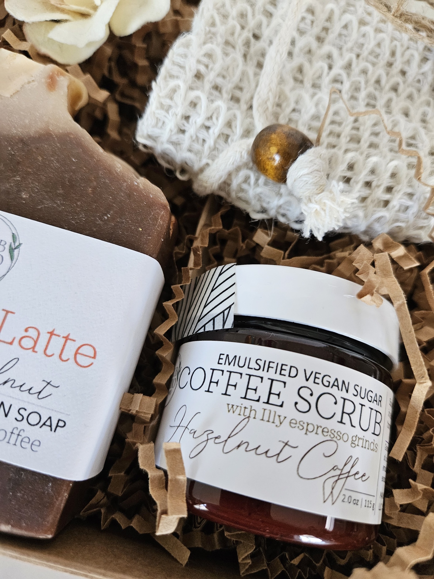 • Hand Whipped Hazelnut Coffee Mini Sugar Scrub | Real espresso grinds provide an amazing caffienated sugar scrub for the skin